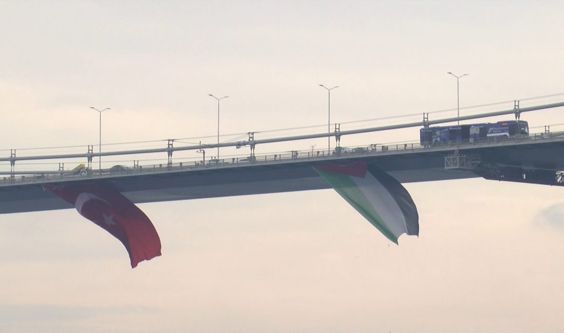 Filistin’e destek amacıyla İstanbul Valiliği tarafından Boğaz’daki köprülere Filistin bayrağı asıldı.