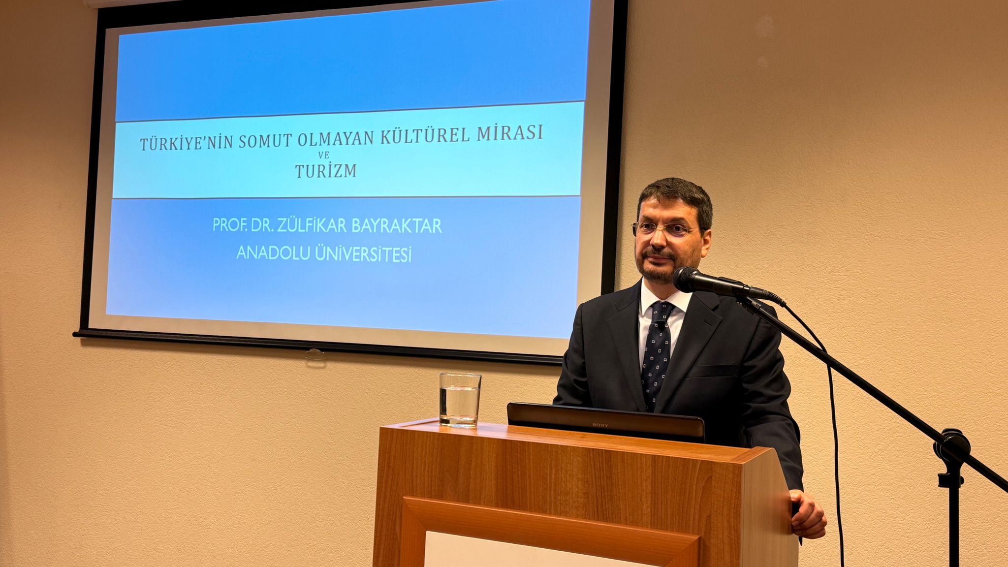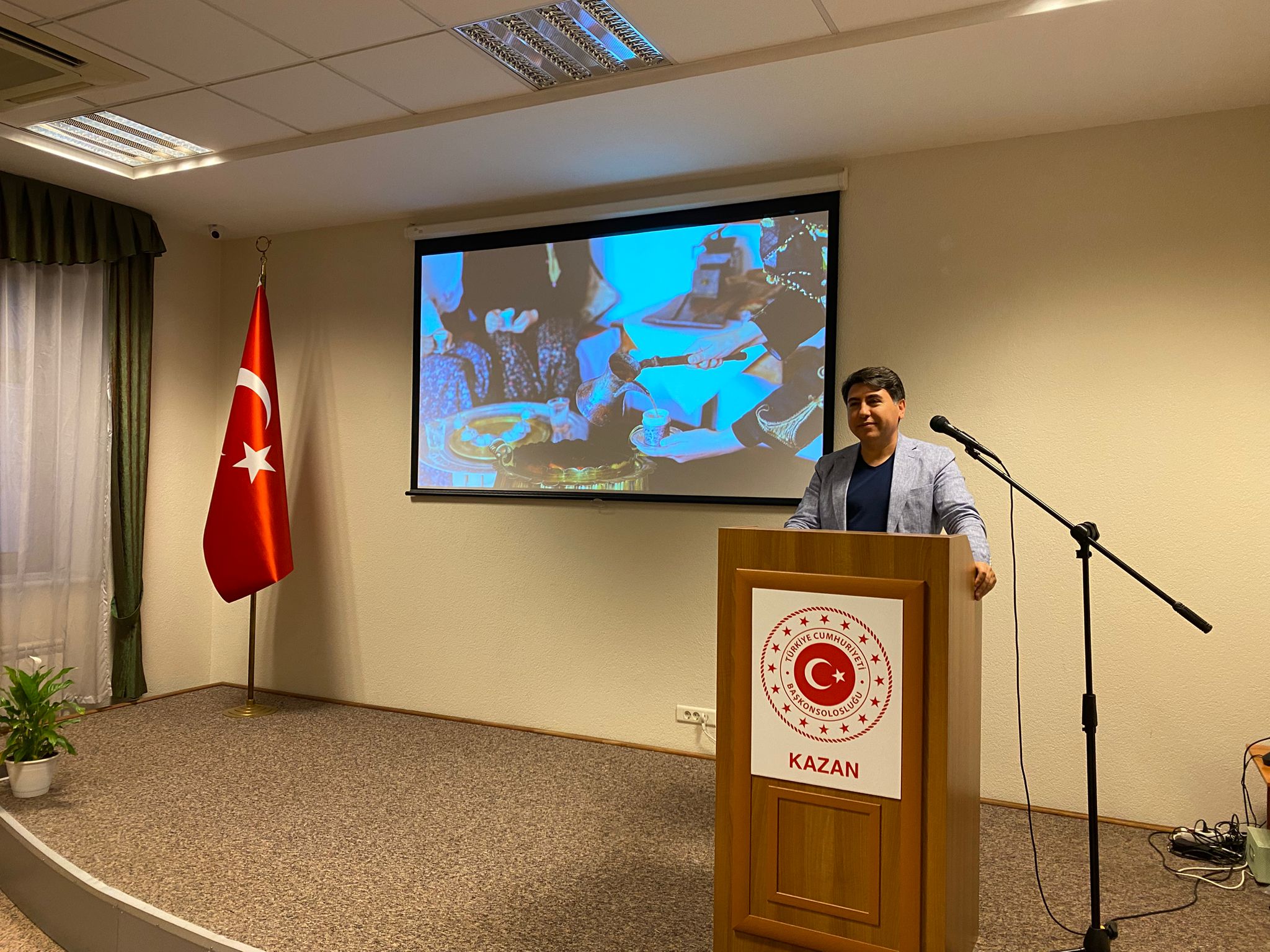 Türkiye Cumhuriyeti Kazan Başkonsolosluğu ev sahipliğinde düzenlenen “Türkiye Kültür Turizmi ve Somut Olmayan Kültürel Miras” başlıklı etkinlik, kültürel diplomasi ve akademik iş birliğinin güzel bir örneği olarak dikkat çekti. Programda, Anadolu Üniversitesi Edebiyat Fakültesi Türk Dili ve Edebiyatı Bölümü Öğretim Üyesi Prof. Dr. Zülfikar Bayraktar, kültürel mirasın turizmle ilişkisini kapsamlı bir sunumla ele aldı.