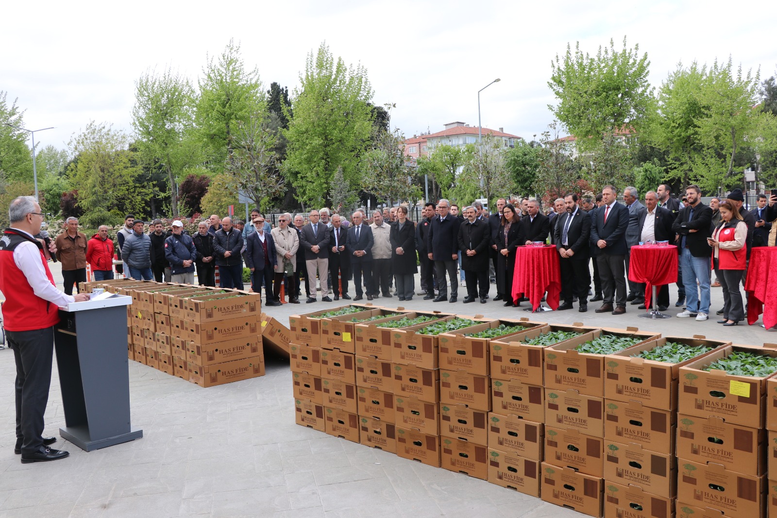 Fide dağıtım töreninin ardından protokol üyeleri çiftçilere fideleri teslim ederek sohbet etti, günün anısına hatıra fotoğrafları çektirildi.