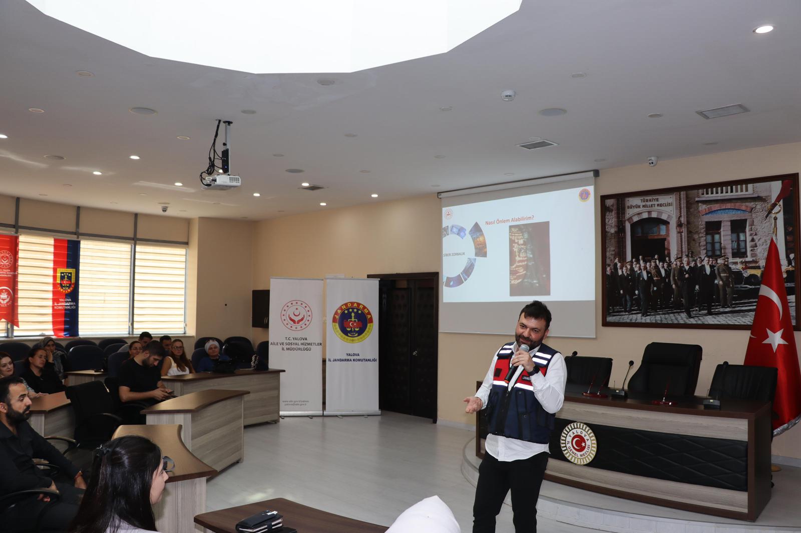 Aile ve Sosyal Hizmetler Bakanlığı’nın “Türkiye Yüzyılı Aile Söyleşileri” programı kapsamında, Yalova İl Müdürlüğü ve İl Jandarma Komutanlığı iş birliğiyle “Akran Zorbalığı ve Siber Zorbalık” temalı söyleşi gerçekleştirildi.