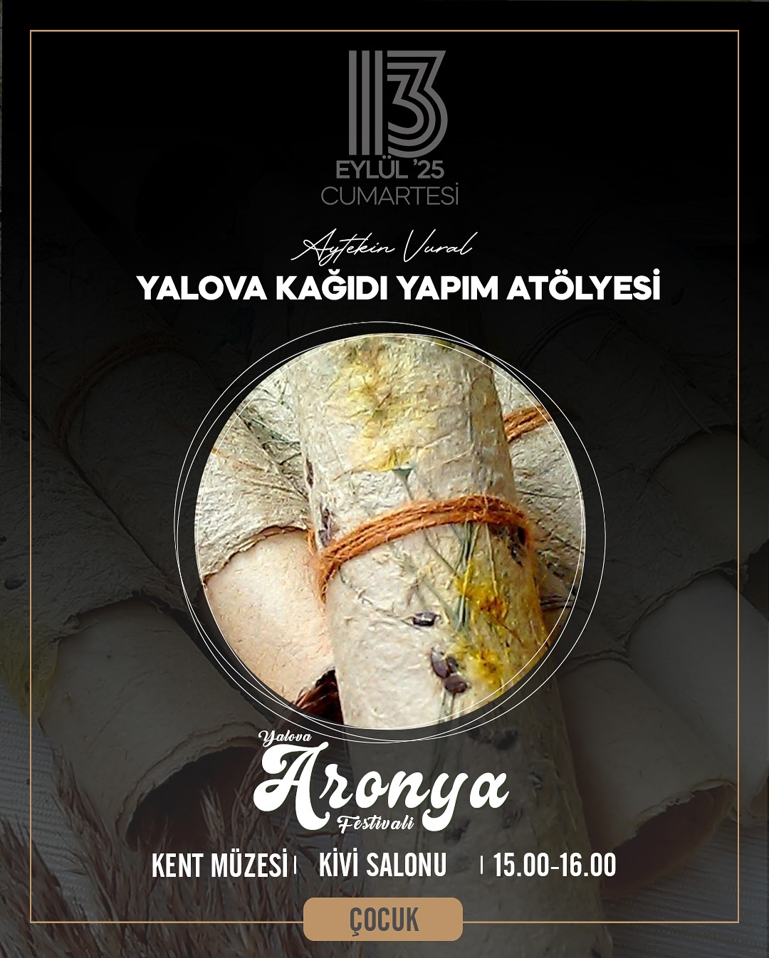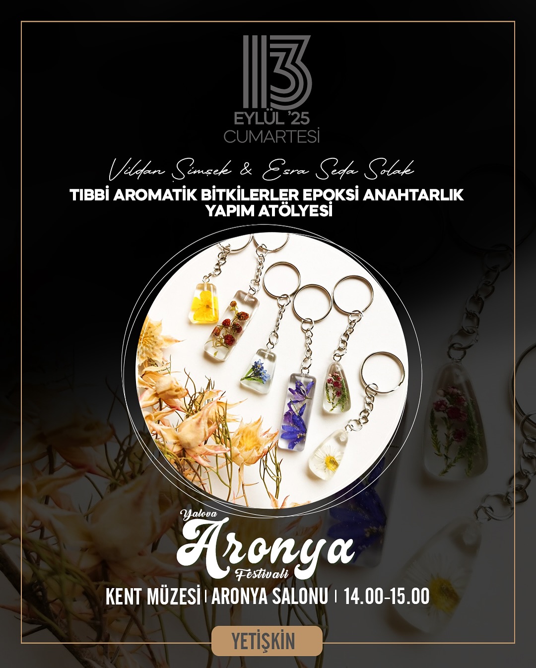 Yalova Valiliği tarafından bu yıl ikincisi düzenlenen Yalova Aronya ve Tıbbi Aromatik Bitkiler Festivali, 12-13-14 Eylül 2025 tarihlerinde 15 Temmuz Demokrasi ve Cumhuriyet Meydanı’nda gerçekleştirilecek. Festivalin ikinci günü olan 13 Eylül 2025, birbirinden yaratıcı ve öğretici atölyelere ev sahipliği yapacak.