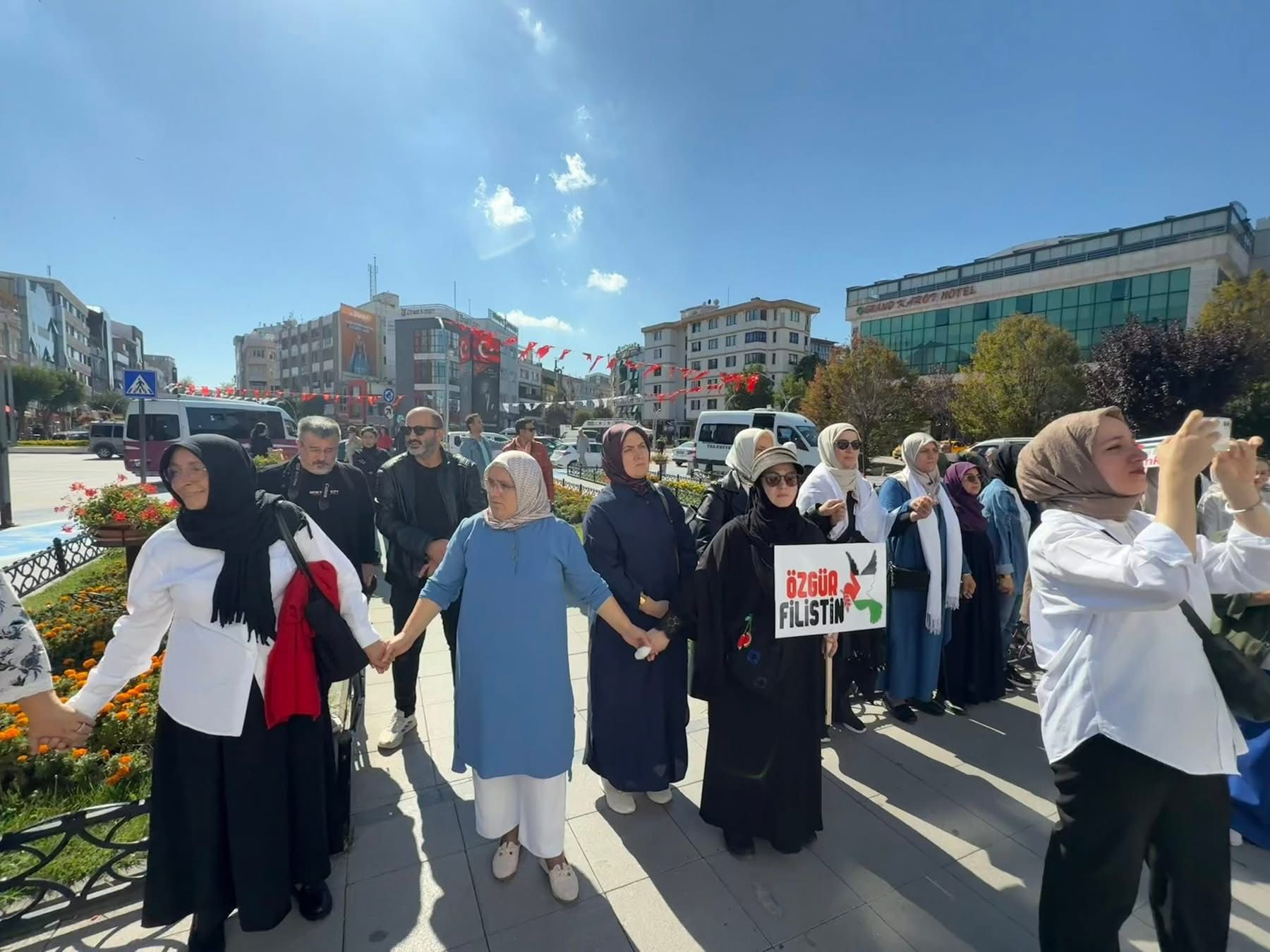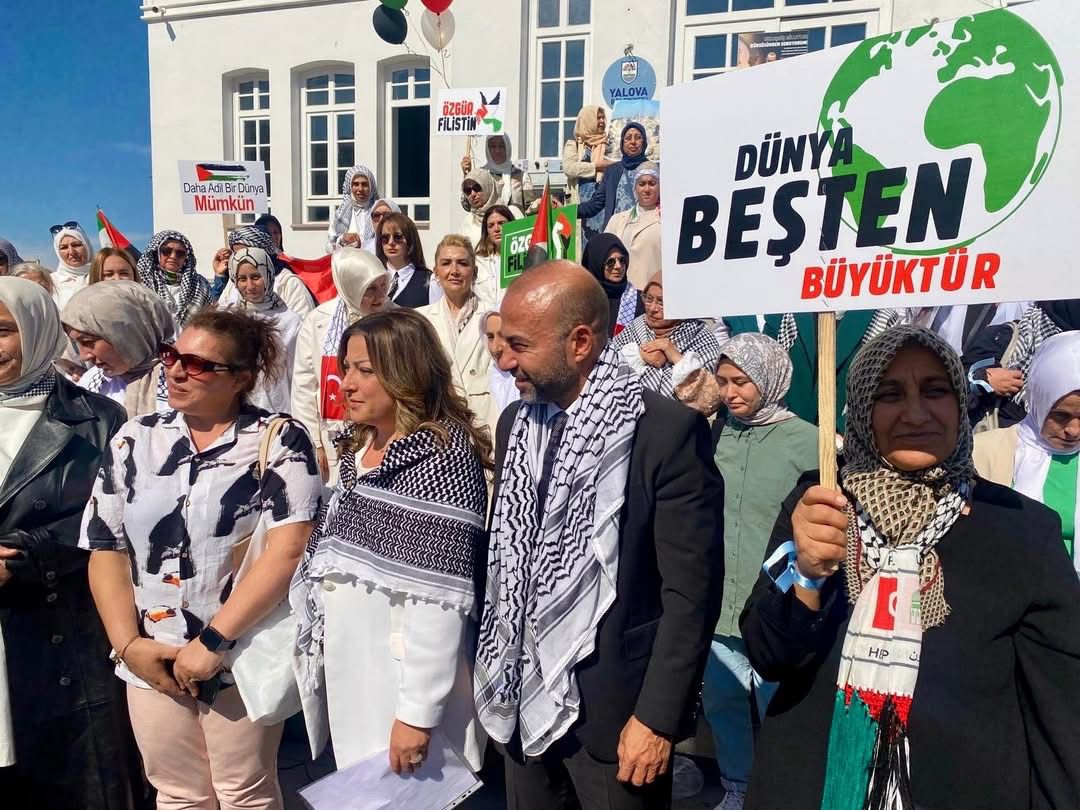 Etkinlikte, Gazze’nin onurlu anneleri ve masum evlatları için Yalova’dan yükselen dualar, Filistinli kadınların yaşadığı acılara ortak olma niyetiyle gökyüzüne yükseldi. Kadınlar, ellerinde Türk ve Filistin bayraklarıyla Gazze’ye destek mesajları verdi.