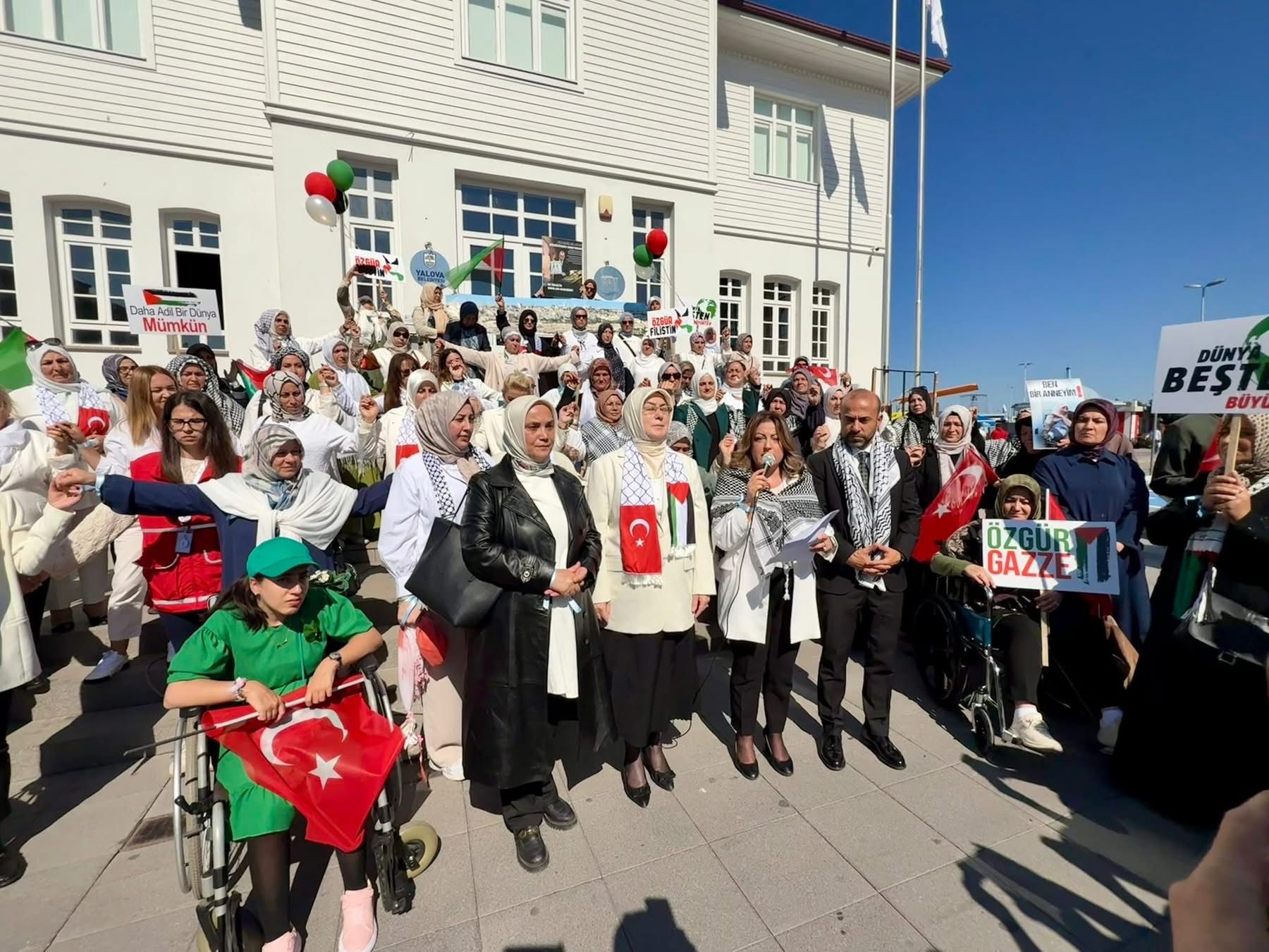 Yalova ile birlikte İstanbul, Ankara, Diyarbakır, Rize ve 81 ilde eş zamanlı olarak gerçekleştirilen etkinlikte, Türkiye’nin dört bir yanındaki kadınlar Filistinli annelerin sessiz çığlığına ses oldular.